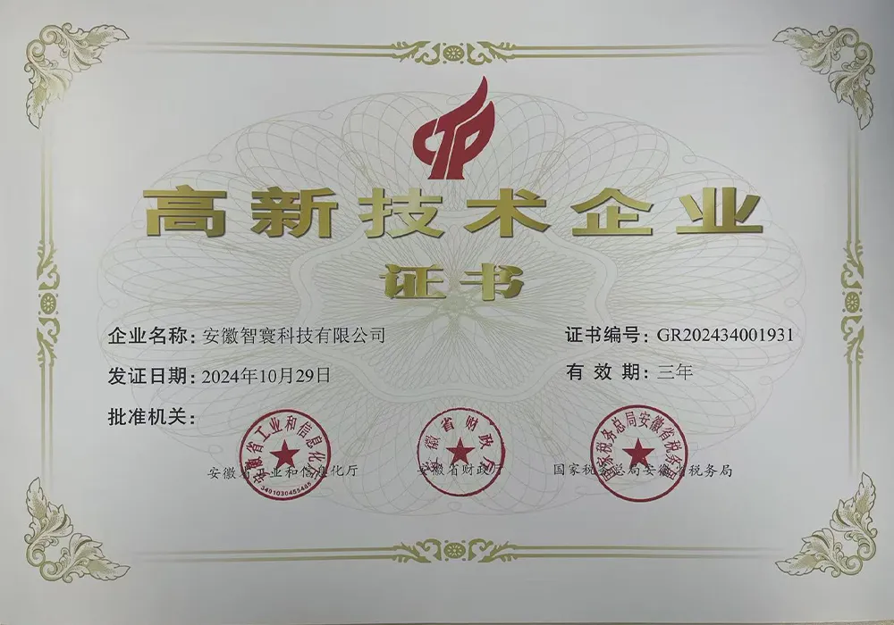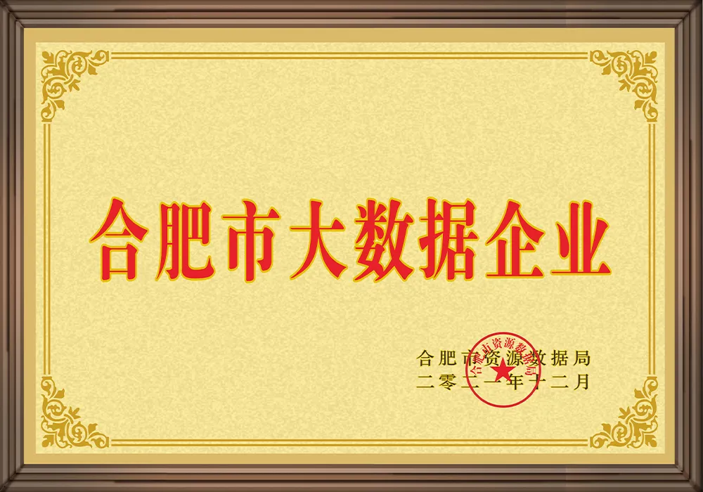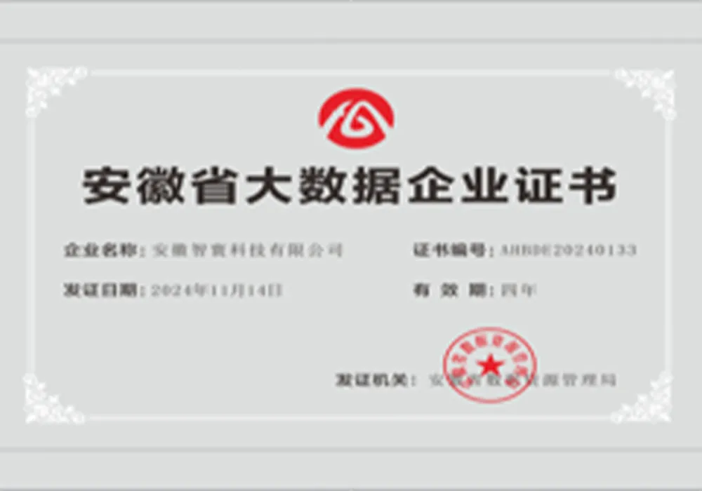 Сертификат предприятия по большим данным провинции Аньхуэй